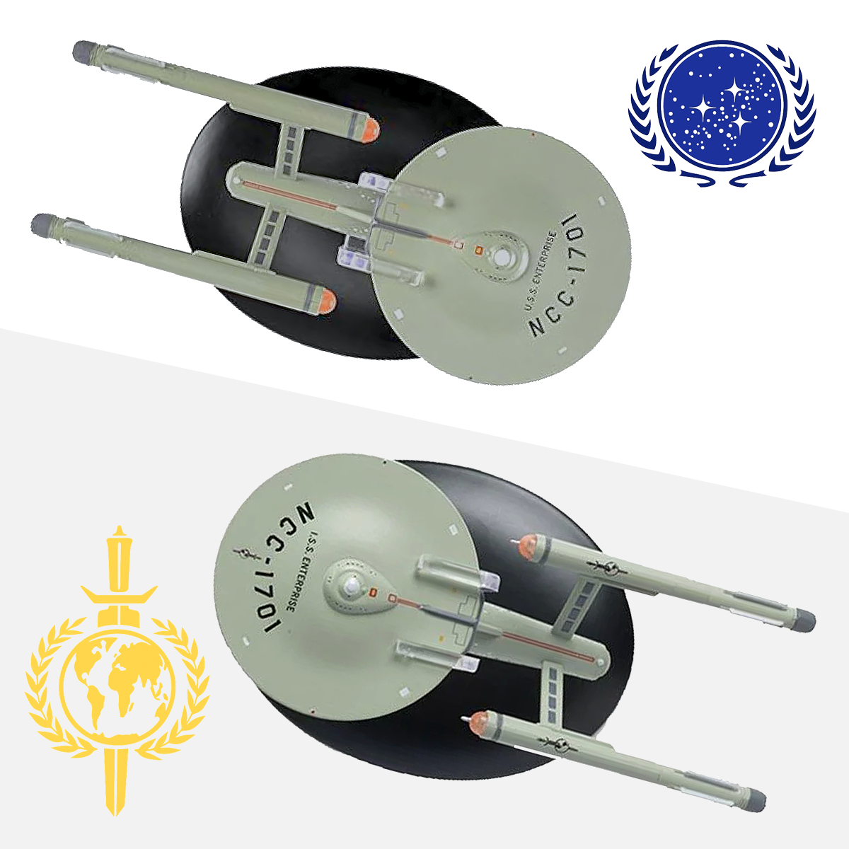 Two legends, two universes. This bundle pairs the U.S.S. Enterprise NCC-1701 (Prime Universe) with its ruthless Mirror counterpart, the I.S.S. Enterprise NCC-1701, as seen in the classic Star Trek: The Original Series episode “Mirror, Mirror.”